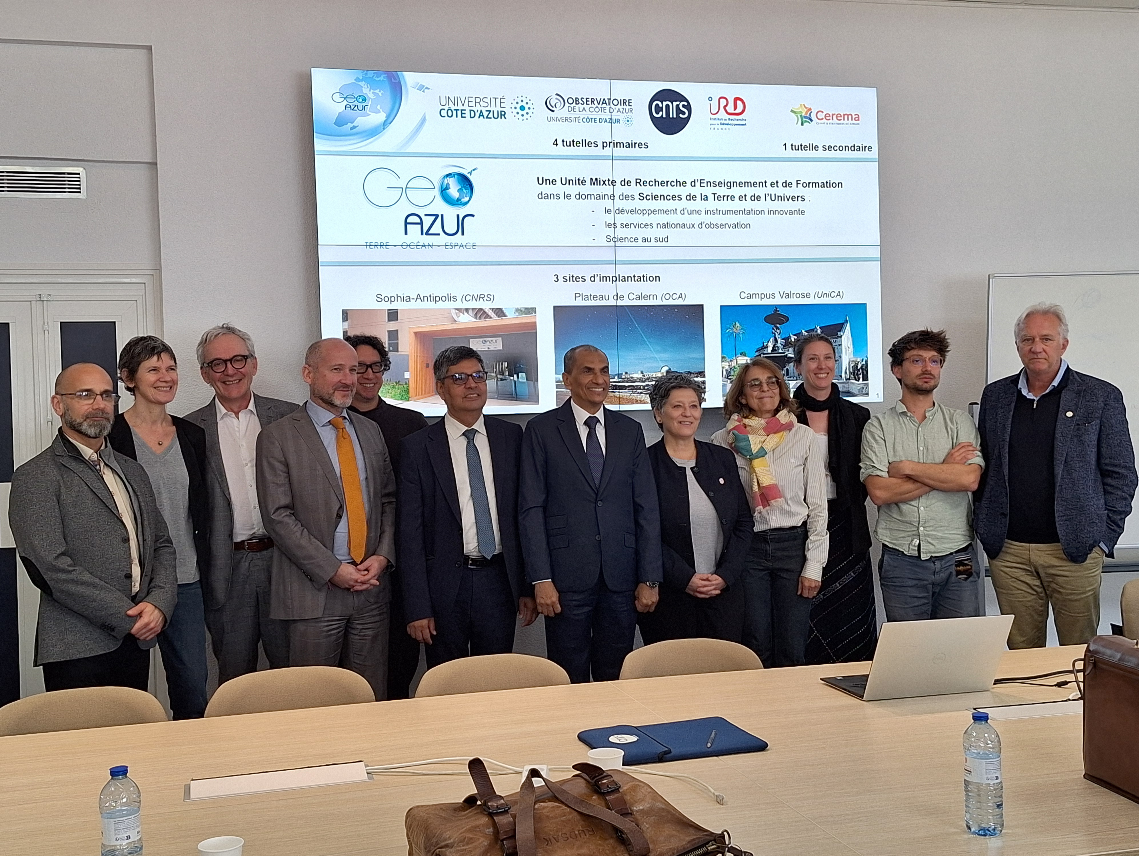 Une délégation de Djibouti, dont Nabil MOHAMED, Ministre de l’Enseignement Supérieur et de la Recherche de Djibouti et Mohamed JALLUDIN, Directeur du Centre d’Etude et de Recherche de Djibouti (CERD) a été reçu le jeudi 12 mars 2026 à Géoazur en présence de Valérie VERDIER, PDG de l'IRD et de Jeanick Brisswalter, Président d'UniCA, pour échanger sur les travaux de recherche entrepris dans cette région de rifts.